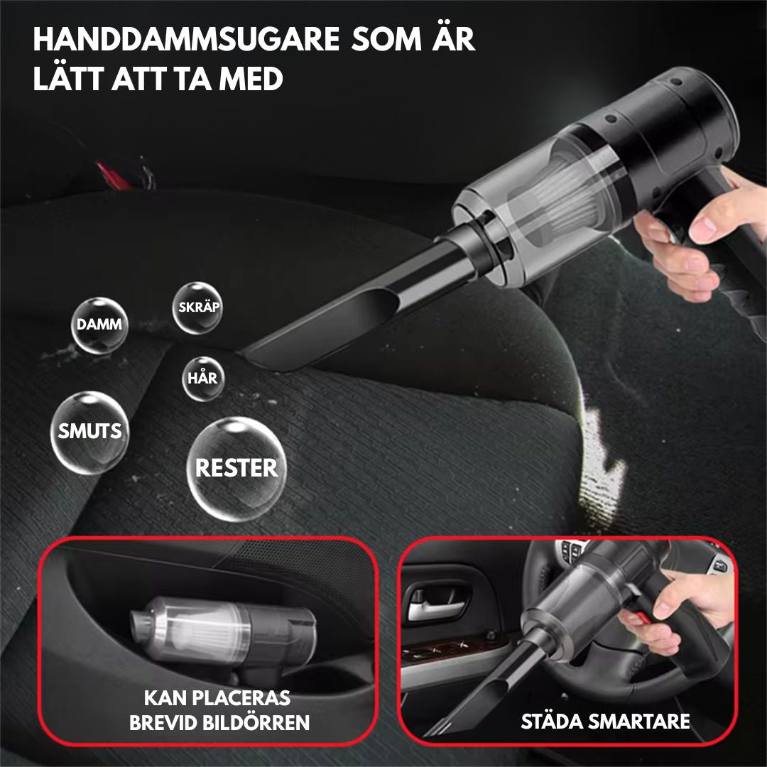 Håll bilen ren – varje dag. Den här smarta bildammsugaren är designad för att placeras diskret vid bildörren, så att du alltid har den nära till hands när smulor, grus eller damm dyker upp. Perfekt för snabba städningar innan jobbet, efter barnens fotbollsträning eller när du bara vill ge bilen en fräsch känsla på några sekunder.